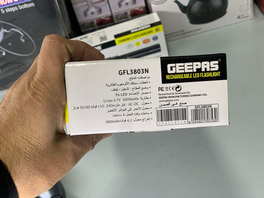 Rechargeable Geepas Handheld Flashlight 4 Hours Backup Aluminum Body and Li-ion 2*18650 3.7v Battery 5000mAh